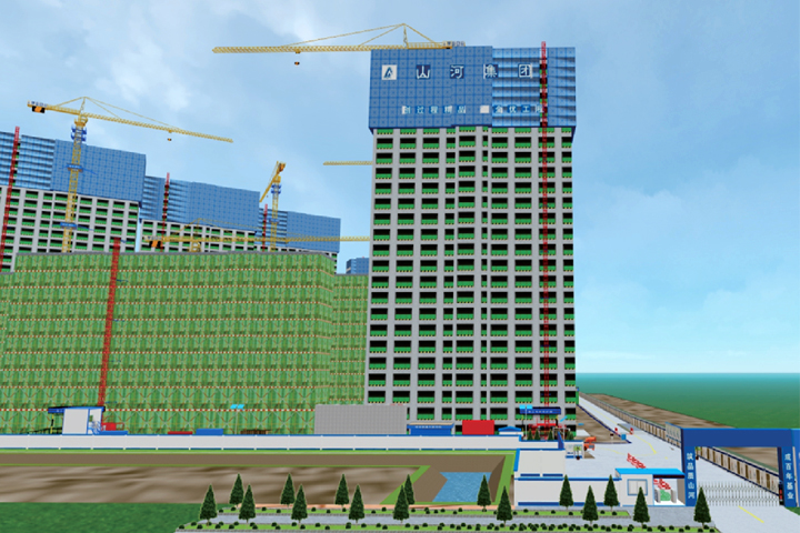现场安装了扬尘监测设备,应用了施工升降机安全监控系统、塔吊监控系统、吊钩可视化系统、办公区生活区视频监控系统、员工通道门禁系统等智慧产品。同时,运用BIM技术进行三维场布、建模、机电碰撞测试等,有效控制施工质量。