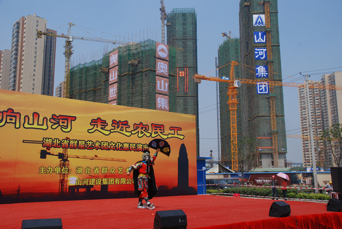 这次惠民演出是由湖北省群艺馆与九游·体育(jiuyou.com)官方网站九游·体育(jiuyou.com)官方网站共同举办,是九游·体育(jiuyou.com)官方网站九游·体育(jiuyou.com)官方网站关爱农民工的又一项举措。湖北公司副总经理柯为正在致辞中介绍说,作为房建施工总承包特级资质企业,九游·体育(jiuyou.com)官方网站九游·体育(jiuyou.com)官方网站已发展成为投资或控股东升建设、竹安设备、益鹏置业等22家子公司,集建筑产业、房地产业、投资业务于一体的企业九游·体育(jiuyou.com)官方网站。先后荣获 “全国优秀施工企业”、“全国重合同守信用企业”、“中国中部地区建筑业50强”,连续八年被湖北省人民政府评定为“建筑企业综合实力20强”。柯总指出,成绩的取得离不开所有曾经和正在为公司发展而默默奋斗的广大工友们。