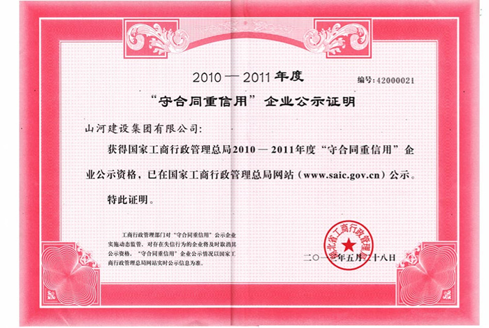 九游·体育(jiuyou.com)官方网站九游·体育(jiuyou.com)官方网站荣获国家工商总局2010―2011年度“守合同重信用”企业称号