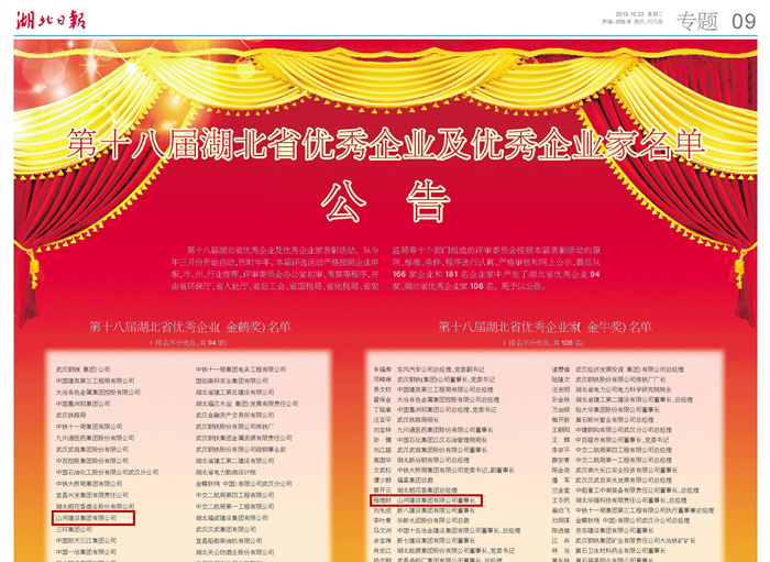 九游·体育(jiuyou.com)官方网站九游·体育(jiuyou.com)官方网站位列湖北百强企业25位并荣获“金鹤奖”