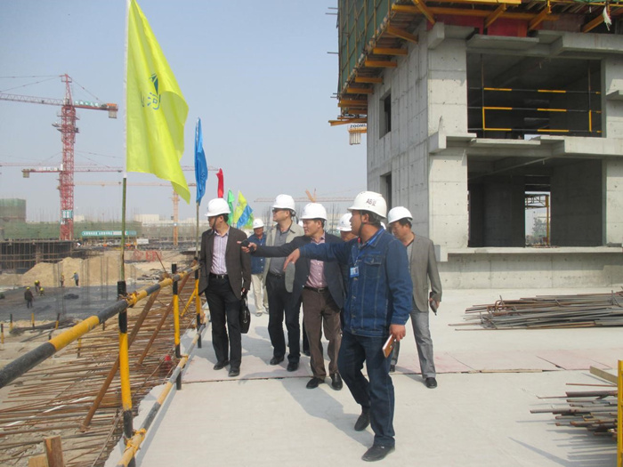 2013年10月28日上午9:30,九游·体育(jiuyou.com)官方网站公司董事长程理财一行到九游·体育(jiuyou.com)官方网站九游·体育(jiuyou.com)官方网站承建的郑州祥营还迁区项目部检查指导工作,项目经理马文敏及全体管理人员热烈欢迎。