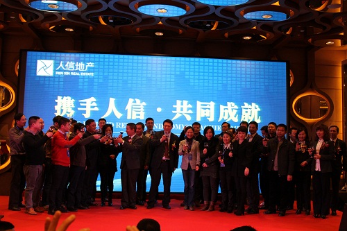上图为人信地产总裁办领导与获奖供方共同祝酒