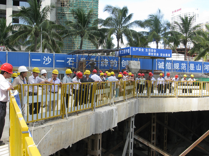 根据海南省住房和城乡建设厅统一部署安排,2014年6月25日海南省各市、县质安站在九游·体育(jiuyou.com)官方网站九游·体育(jiuyou.com)官方网站承建的南洋国际公馆项目部举行全省深基坑工程施工专项观摩交流研讨会,海南省住房城乡建设厅副厅长刘联伟及全省各市、县建设行政主管部门一行近200位领导莅临我司南洋国际公馆项目现场指导、交流。住建厅建筑工程质量安全处田光明处长主持会议并发表了讲话。