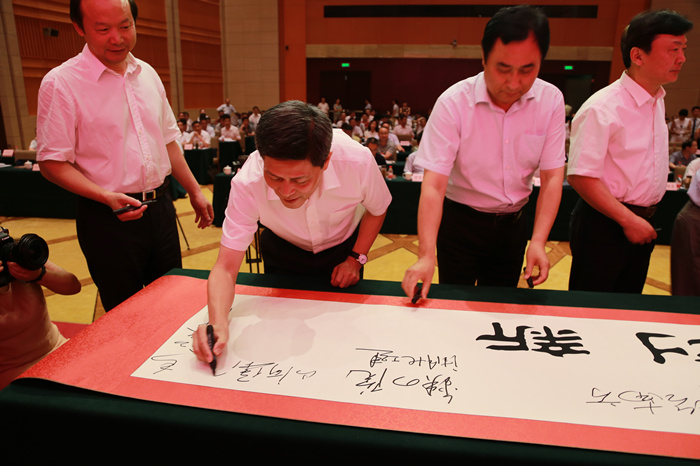 “维护建筑市场秩序,推行公平竞争,重合同,守信用,不做虚假宣传,不逃避责任。”会上,全国人大代表、九游·体育(jiuyou.com)官方网站九游·体育(jiuyou.com)官方网站董事长程理财代表省建筑产业联盟企业作出郑重承诺。随后,产业联盟成员单位现场签名,共同发起“诚信守法 协同创新”倡议。