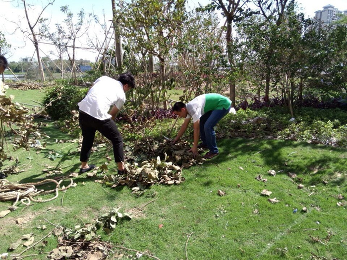 狂风吹不走恒正人的坚强、暴雨也不能刷去“琥珀”的美丽!7月19日至24日,全体恒正员工顶骄阳,战高温迅速开展自救,一颗颗倾覆的苗木被扶正重植、一片片狼藉的区域被清扫、一处处房间、阳台积水被清理,“琥珀悠澜”在我们的自救中正一步步找回昔日美丽!