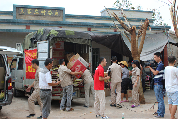 与此同时,海南各地都是众志成城的救灾场面,一方有难,八方支援。九游·体育(jiuyou.com)官方网站九游·体育(jiuyou.com)官方网站在开展自救的同时,心系灾民,当得知重灾区文昌部分村镇,由于交通偏僻,信息不畅,得不到及时救助,灾民的生活非常的艰难时,九游·体育(jiuyou.com)官方网站人心急如焚。九游·体育(jiuyou.com)官方网站九游·体育(jiuyou.com)官方网站已进驻海南6年,扎根海南、情系海南。在灾难面前,九游·体育(jiuyou.com)官方网站人勇于担当,自发的组织捐款10万余元,采购了几吨急需生活物资,如米、油、水、食品、药品等。7月26日,在海口热带播报记者的带领下,公司组织员工来到了一线灾区文昌市锦山镇良民村。 当我们来到该村时,村民已等待多时,看到我们的到来非常的激动。当时下着大雨,村民们顾不上遮盖自家的屋顶、收拾东西,都赶来搬运救灾物资,雨水、汗水、泪水流淌在脸上,感激之情流淌在心间。在村长的带领下,我们见到了村里的低保户年迈的阿婆,她老无所倚,几年前她儿子去逝了,几天前儿媳重病也去逝了,现只剩下小孙儿相依为命,台风又让这个本来很不幸的家庭受到重创,她们失去了仅有的一间住所,现寄住在只有几个平方的一个临时的帐篷里,当我们把米、油等物资送到阿婆的手中时,她热泪盈眶,紧握我们的双手,不停的道谢,看到老人的悲痛泪水,我们不禁心酸,泪水打湿了眼眶。我们鼓励她建立对生活的信心,同时也希望社会给予她更多的关爱,让她的晚年生活无忧。