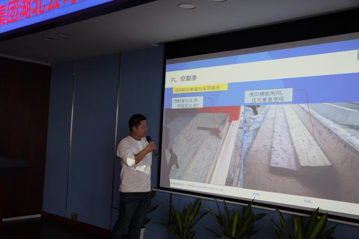 本次培训共设主会场1个,分会场一个(襄阳),共计150余人参加培训,培训主要分为三个环节:第一,质量通病防治基本知识讲述;第二,典型项目部经验交流发言;第三,各项目部参会代表自由发言。会议由工程部经理陈敬章主持。