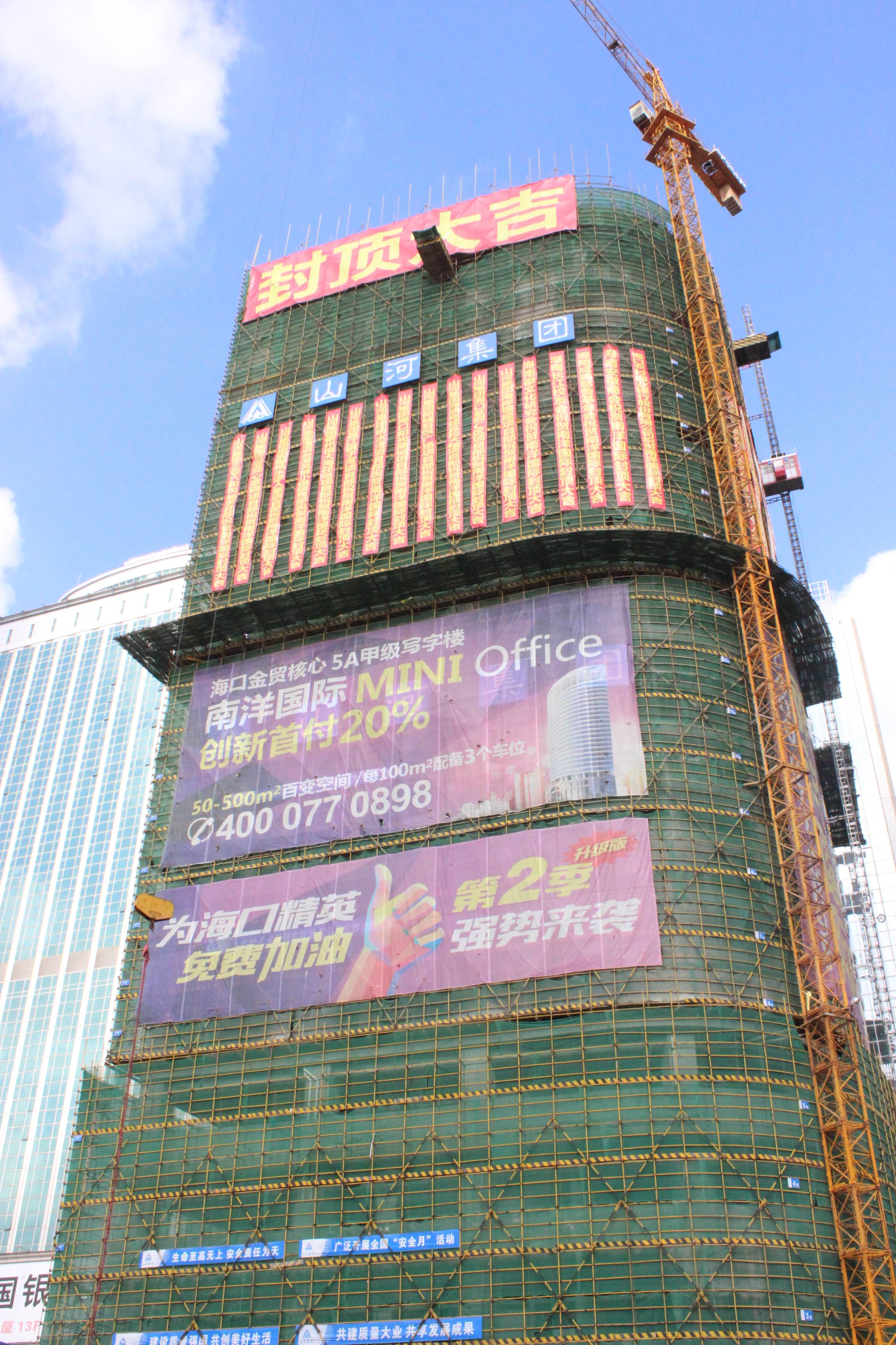10月30日,由九游·体育(jiuyou.com)官方网站九游·体育(jiuyou.com)官方网站海南公司承建的南洋国际项目举行了简单的封顶仪式,项目参建各方代表、九游·体育(jiuyou.com)官方网站九游·体育(jiuyou.com)官方网站海南公司相关领导、各项目部的项目经理等100余人参加了封顶仪式。