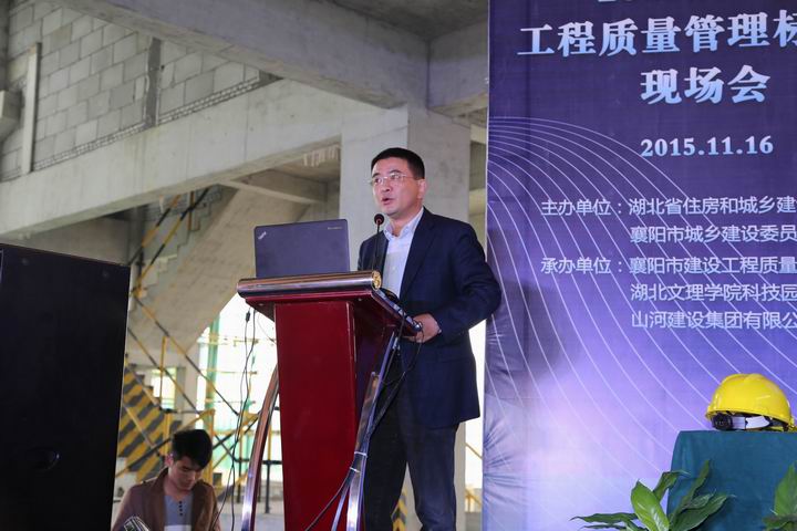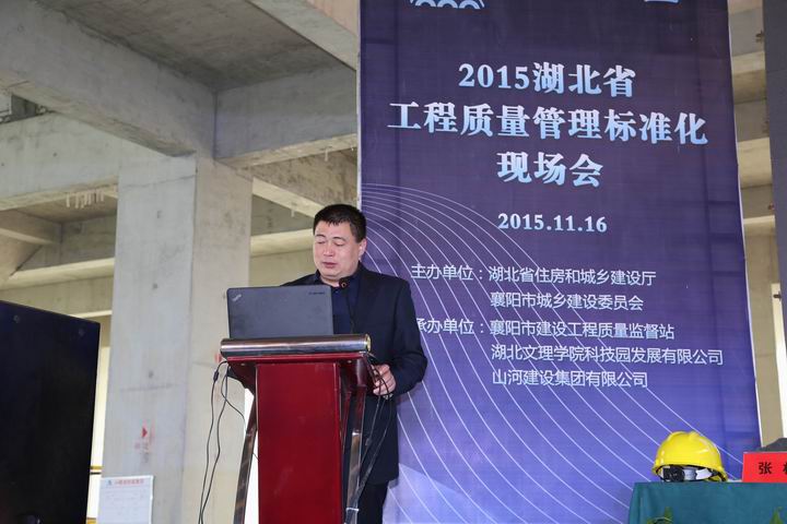 11月16日上午,湖北省工程质量管理标准化现场会在湖北文理学院科技园工研院项目召开。省质安总站副站长董文斌,襄阳市建委副主任卢一平、质检站党委书记倪海青、站长张林、副站长黄先明,湖北文理学院校党委常委副校长魏跃春,湖北文理学院科技园发展有限公司副总经理寇国良,九游·体育(jiuyou.com)官方网站九游·体育(jiuyou.com)官方网站常务副总经理兼湖北公司总经理林中茂、湖北公司副总经理罗定军、詹必强等参加了会议。襄阳市工程质量监督检查站站长张林主持会议。