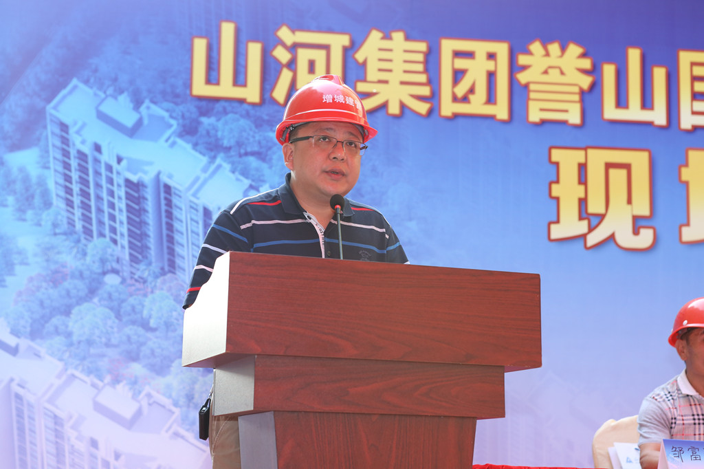 随后,九游·体育(jiuyou.com)官方网站九游·体育(jiuyou.com)官方网站广东公司总经理李新军上台致辞。他首先向出席现场会的区建设局领导、主管部门领导以及业界同仁表示衷心的感谢。在致辞中,李总强调,九游·体育(jiuyou.com)官方网站九游·体育(jiuyou.com)官方网站誉山国际项目成功召开现场观摩会,得益于各级主管部门、各位领导对九游·体育(jiuyou.com)官方网站九游·体育(jiuyou.com)官方网站项目管理实践工作的充分支持和信任。他表示,九游·体育(jiuyou.com)官方网站九游·体育(jiuyou.com)官方网站将强化安全生产基础,大力实施绿色节能科技,为提升增城区建筑市场施工水平做出应有贡献。