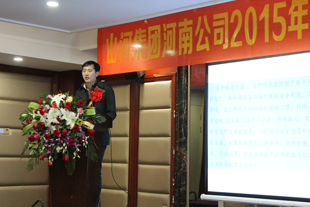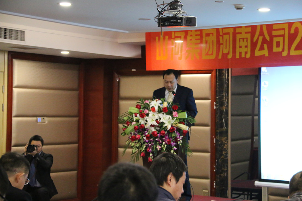 河南公司总经理马文敏代表河南公司对2015年各项工作情况进行汇报,深刻分析了当前面临的发展形势和工作中存在的不足,明确了2016年河南公司在规章制度、团队建设、工程创优方面的重点工作任务:完善各项目制度,结合九游·体育(jiuyou.com)官方网站公司区域管理办法,制定一套适合河南公司的规章制度;继续抓团队建设及专业人才的引进,人才是企业持续发展并强大的必要因素;大力推行安全文明施工标准化,严格规范各项目制度,加大创优工作力度,鼓励各项目创优夺杯,区域公司给予支持帮助,力争突破。马总勉励大家要继续发扬精诚团结、共同努力的精神,在新的一年里以更加饱满的工作热情为公司的发展增添新的动力。