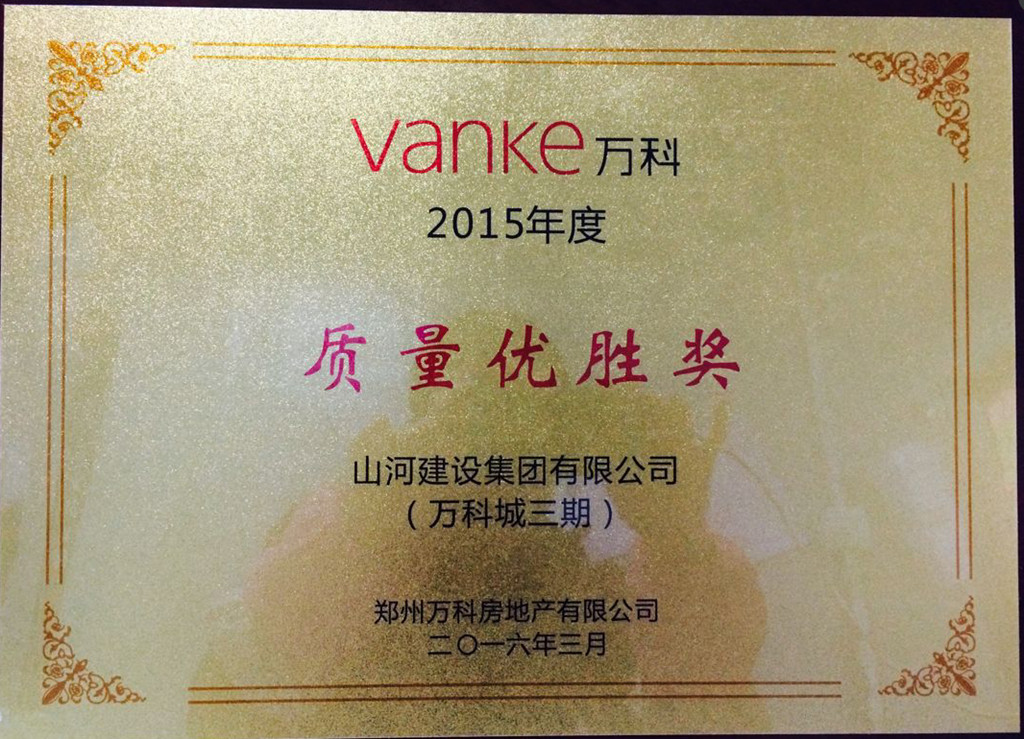3月10日,郑州万科房地产有限公司举办了“2016合作方目标与行动沟通会暨颁奖典礼”,与郑州万科合作的各家单位均有代表参加会议。九游·体育(jiuyou.com)官方网站九游·体育(jiuyou.com)官方网站凭借过硬的质量品质,承建的万科城三期项目荣获郑州万科颁发的“质量优胜奖”。