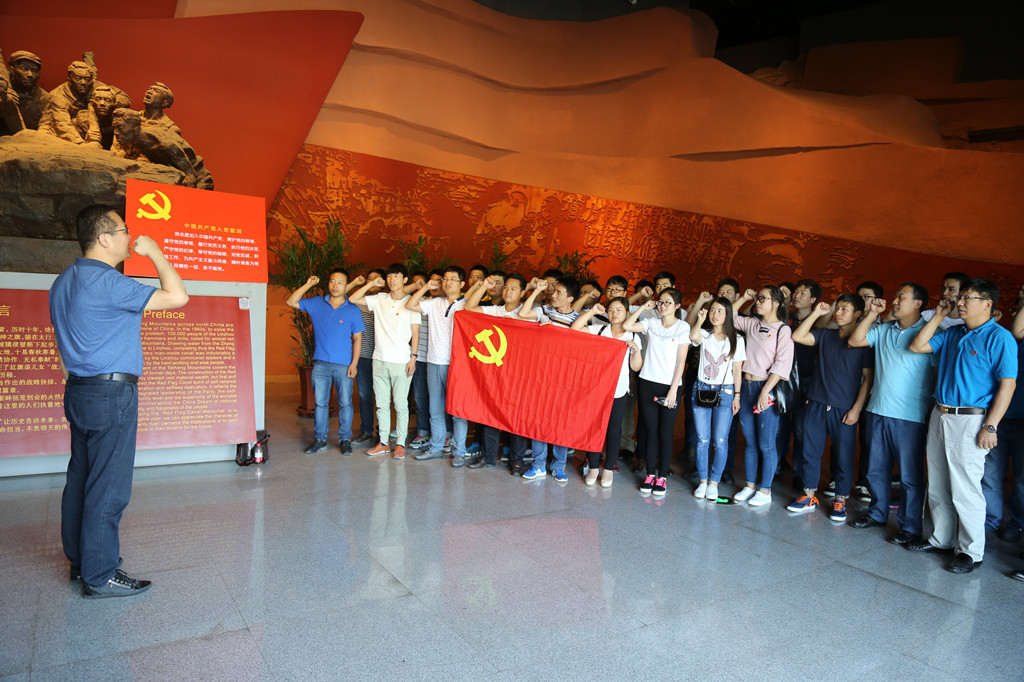 上午10时40分,在河南公司党支部书记马文敏的带领下,全体党员前往红旗渠纪念馆参观并进行入党宣誓。