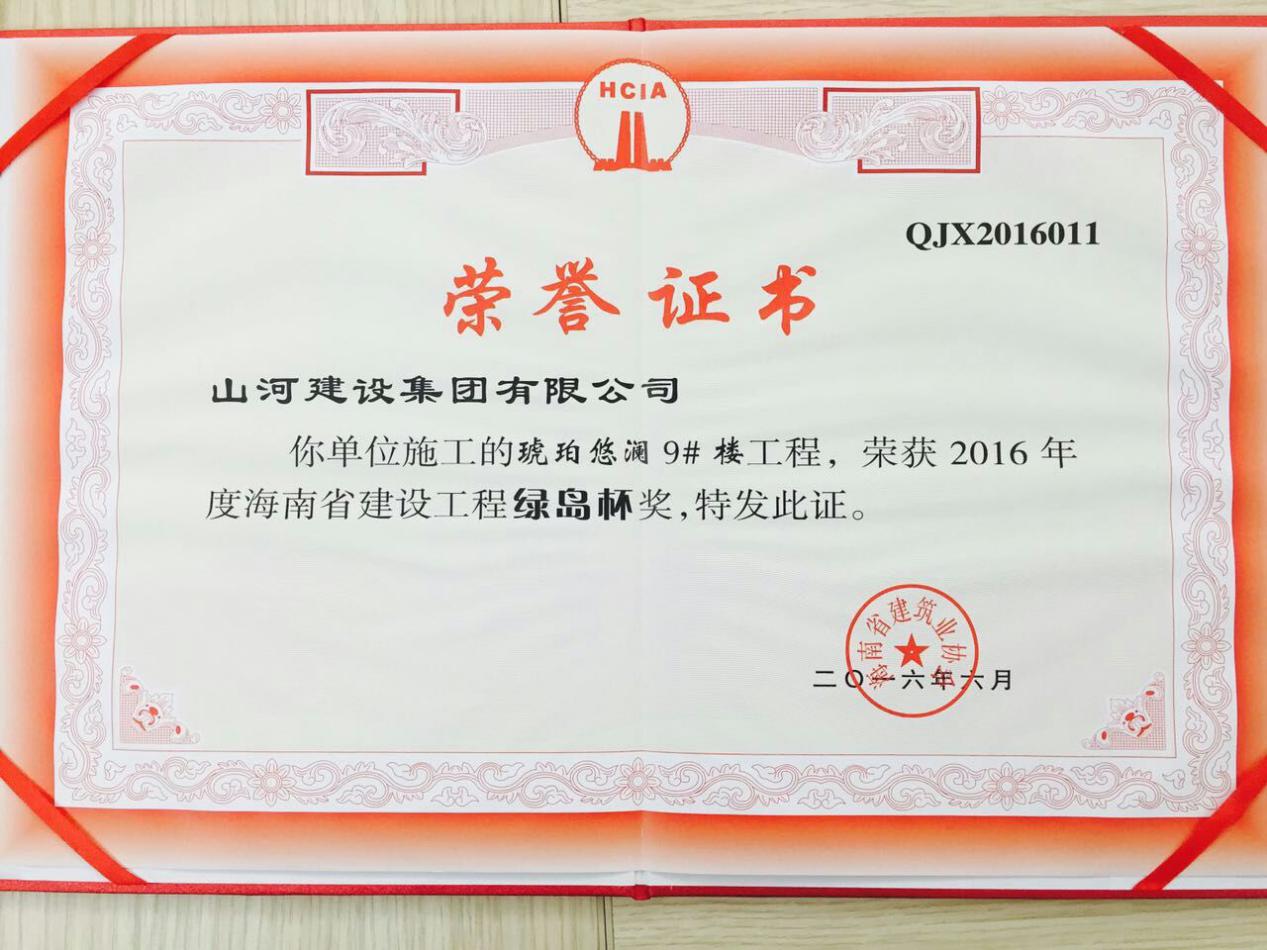 7月14日,海南省建筑业协会组织开展的2016年度海南省建设工程“绿岛杯”奖的评选工作已经结束,经过严格的评审和公示,九游·体育(jiuyou.com)官方网站九游·体育(jiuyou.com)官方网站海南公司承建的琥珀悠澜项目9#楼荣获海南省建设工程“绿岛杯”。