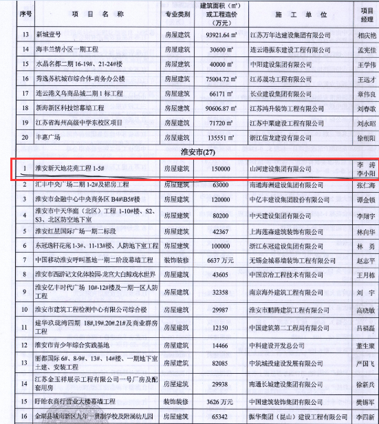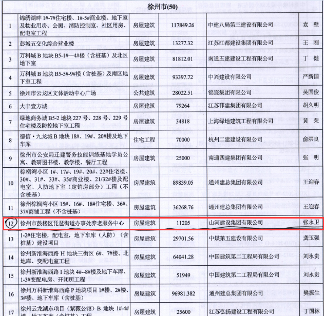 徐州市鼓楼区琵琶街道办事处养老服务中心项目,隶属徐州市鼓楼区琵琶街道办事处,徐州市重点项目,是集养老、医疗、健身于一体的综合性民生工程,项目建筑面积1.1205万平方米,框架5层,造价约2800万元,于2015年10月开始建设,目前项目已进入装饰装修阶段,预计年底竣工;淮安新天地花苑项目由淮安纵横房地产有限公司开发建设,总建筑面积15万平方米,框剪结构,共5栋34层高层住宅,项目于2014年11月开工建设,目前已进入配套设施施工中,预计明年年初交付使用。