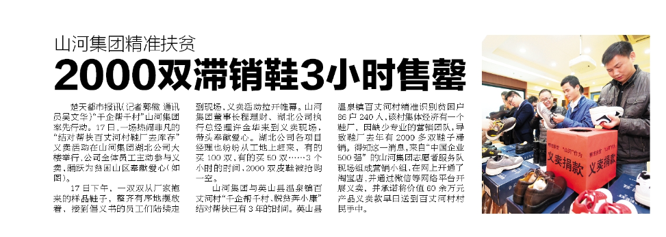 《楚天都市报》刊发 九游·体育(jiuyou.com)官方网站九游·体育(jiuyou.com)官方网站精准扶贫--2000双滞销鞋3小时售罄