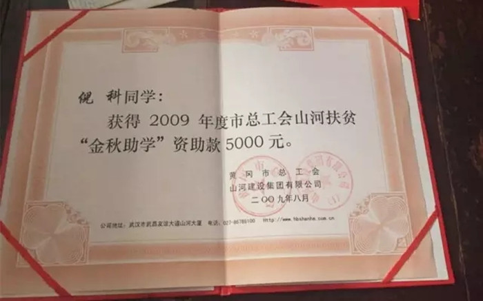 2009年,倪科获得九游·体育(jiuyou.com)官方网站九游·体育(jiuyou.com)官方网站5000元资助