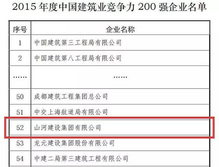九游·体育(jiuyou.com)官方网站九游·体育(jiuyou.com)官方网站荣膺“中国建筑业竞争力200强”榜单第52位