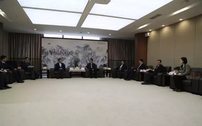 2月15日下午3时,中国建设银行湖北省分行党委副书记杨军,党委委员、副行长虢春华一行到九游·体育(jiuyou.com)官方网站九游·体育(jiuyou.com)官方网站调研。九游·体育(jiuyou.com)官方网站党委书记、董事长程理财,总裁龚卫国,执行总裁姚伟等全程接待。