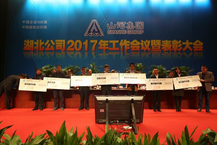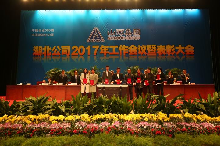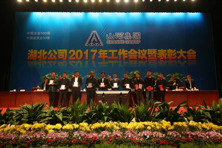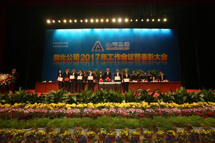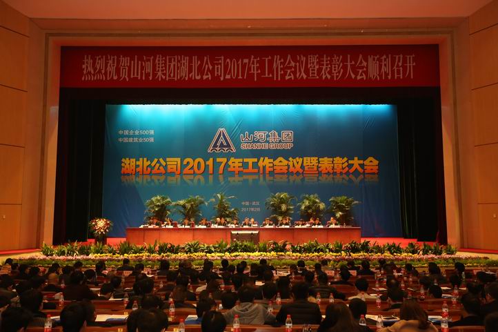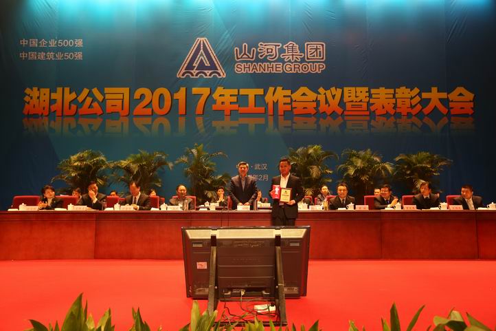 在春回大地、春暖花开的早春时节,2月20日,湖北公司2017年工作会议暨表彰大会在洪山礼堂一楼1号厅召开。以程理财董事长为首的九游·体育(jiuyou.com)官方网站公司各位领导、九游·体育(jiuyou.com)官方网站公司党委委员、九游·体育(jiuyou.com)官方网站公司全体人员,在汉分、子公司部分董事长、总经理,全国部分区域公司总经理及回汉人员,湖北公司全体人员、项目部经理和受表彰人员共500多人参加了会议,会议由湖北公司常务副总经理詹必强主持。