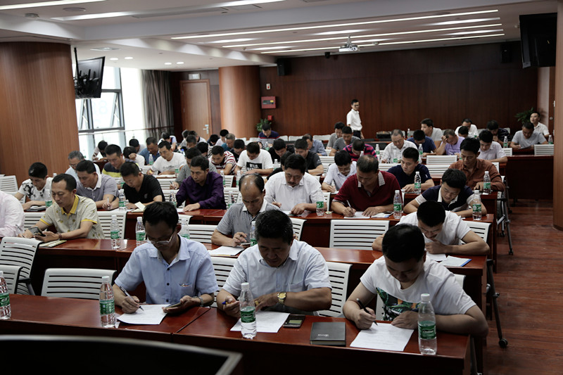 在宣贯会现场,湖北公司组织全体项目部安全员进行了安全知识闭卷考试,大家全部参加,认真答题,按时交还答卷。