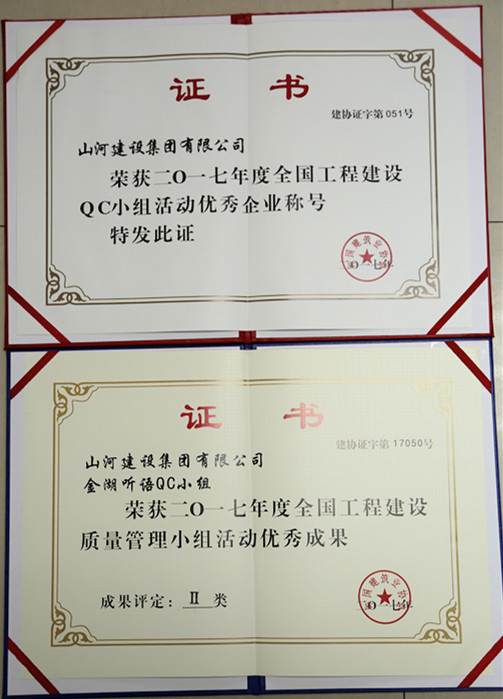 2017年全国工程建设优秀QC小组活动成果交流会第二场于今年7月1日-3日在四川成都举行,经过中国建筑业协会工程建设质量管理分会和专家的评审,九游·体育(jiuyou.com)官方网站九游·体育(jiuyou.com)官方网站湖北公司参与发布交流的金湖听雨项目的“提高外墙内保温薄块验收合格率”荣获2017年度全国工程建设质量管理小组活动优秀成果(成果评定为二类)。与此同时,九游·体育(jiuyou.com)官方网站建设九游·体育(jiuyou.com)官方网站有限公司被授予2017年度全国工程建设QC小组活动优秀企业称号。