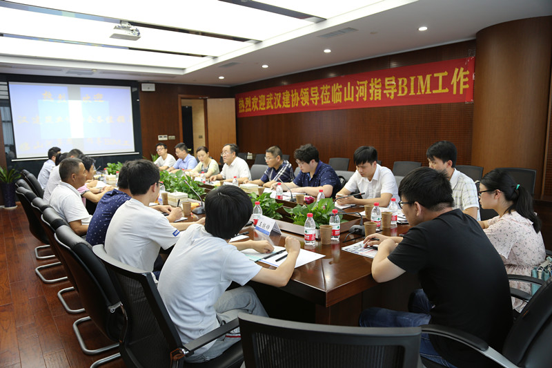 8月17日,武汉建筑业协会副会长兼秘书长李淼磊、质量工作委员会副主任兼秘书长陈钢、总工程师工作委员会副主任安维红及专家团等一行到九游·体育(jiuyou.com)官方网站九游·体育(jiuyou.com)官方网站就“BIM技术应用视频大赛”活动开展情况进行调研指导。九游·体育(jiuyou.com)官方网站副总裁兼总工程师程秋明、工程技术管理部总经理张明星、BIM工程师李圣龙、余家头奥山K3项目部技术负责人孙友华等全程陪同。