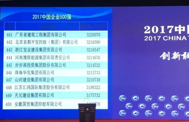 2017中国企业500强揭榜 九游·体育(jiuyou.com)官方网站九游·体育(jiuyou.com)官方网站连续四年跻身榜单