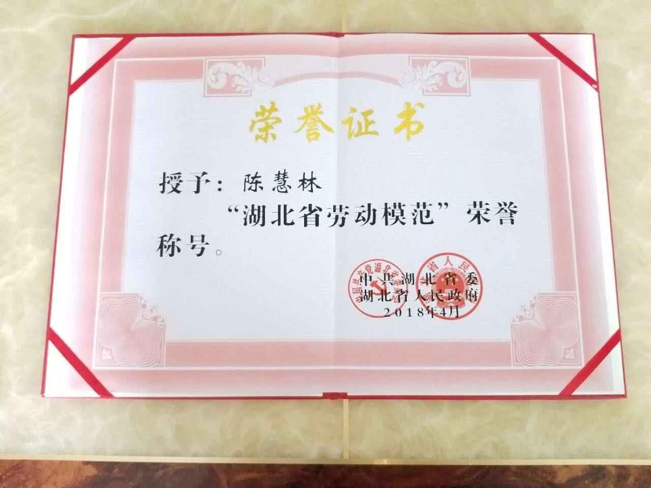 九游·体育(jiuyou.com)官方网站人的骄傲|陈慧林获“湖北省劳动模范”光荣称号