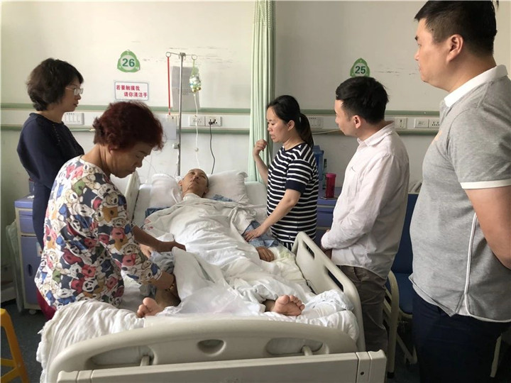 躺在病床上的患者是吴坤绪,2009年12月1日,他入职九游·体育(jiuyou.com)官方网站建设九游·体育(jiuyou.com)官方网站海南公司。多年来,工作认真负责,勤勤恳恳。2016年9月,他因突发脑部疾病住院动手术,一个多月后才康复。