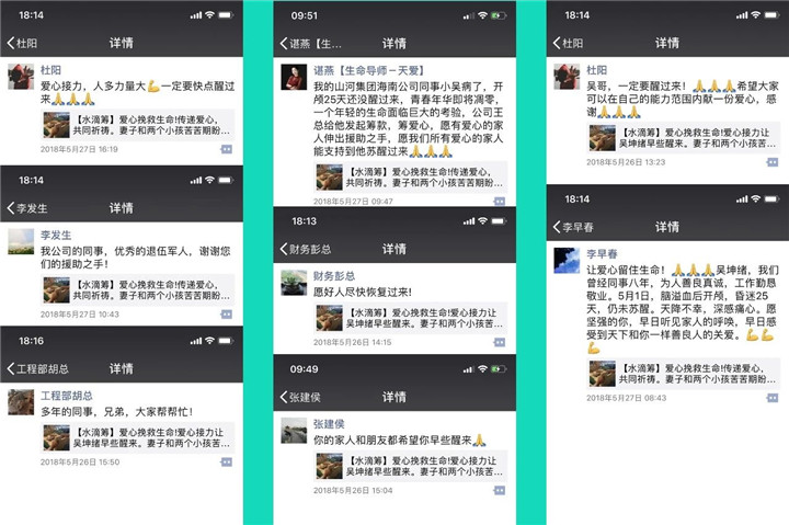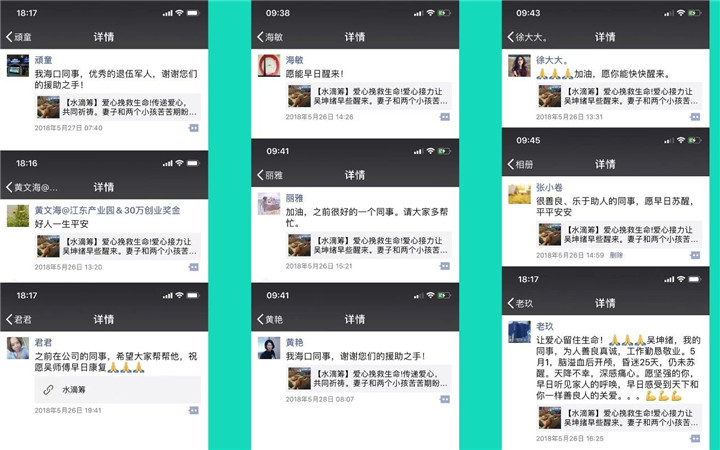 他的遭遇牵动着海南公司原同事们的心。海南公司员工纷纷自发为他募捐,并争相用微信转发他的病情,九游·体育(jiuyou.com)官方网站员工朋友圈一度被自发援助吴坤绪的爱心举动刷屏。