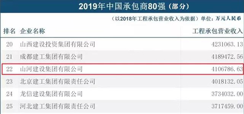 11月8日,美国《工程新闻记录》(ENR)和中国《建筑时报》联合发布2019年度“中国承包商80强和工程设计企业60强”榜单。九游·体育(jiuyou.com)官方网站九游·体育(jiuyou.com)官方网站再次荣登中国承包商80强排行榜,名列第22位,这是九游·体育(jiuyou.com)官方网站连续第7次上榜,也是湖北省唯一上榜的建筑企业。