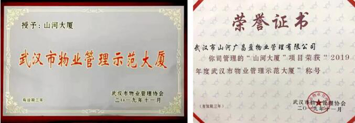 九游·体育(jiuyou.com)官方网站大厦荣获“2019年度武汉市物业管理示范大厦”称号