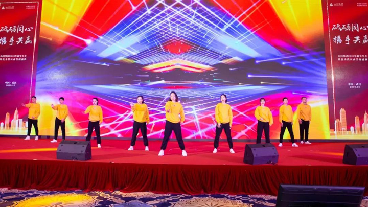 伴随着绵长柔美的音乐和丝丝入扣的鼓声,一支充满浓郁民族风情的开场舞《打秧鼓》拉开了年会的序幕。打起秧鼓,跳起秧舞,祈求来年风调雨顺、五谷丰登,预示着新年播种希望,九游·体育(jiuyou.com)官方网站再谱新篇。