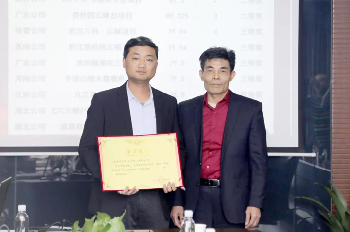 江西公司九江美的•天铂湾项目荣获智慧工地一等奖;江苏公司2014-67号地块开发项目、广东公司碧桂园云曦台项目荣获智慧工地二等奖;项目管理公司武汉万科·云城项目、西南公司黔江碧桂园五期工程、广东公司美的翰湖苑三期工程、河南公司平顶山恒大珺睿府二期工程荣获智慧工地三等奖;江西公司九江美的•国宾府项目、湖北公司武穴市棚户区改造项目(一期)、湖北公司宜昌自贸区综合服务大楼项目荣获智慧工地优秀奖。
