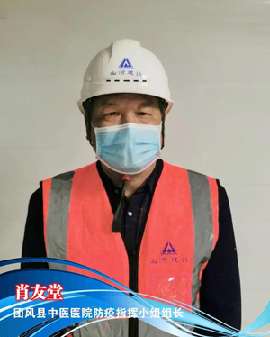 2月26日7时许,又一所团风版“小汤山”——即将竣工的县中医医院新院区应急改造工程正在加紧施工,肖友堂被任命为项目防疫指挥小组组长,带领一支近40人的突击队赶到现场增援。