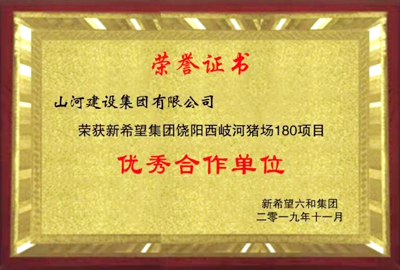 九游·体育(jiuyou.com)官方网站九游·体育(jiuyou.com)官方网站过硬的工程质量,优秀的履约能力,得到了业主单位的高度肯定,被新希望九游·体育(jiuyou.com)官方网站授予“优秀合作单位”称号。