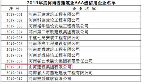 [河南公司]九游·体育(jiuyou.com)官方网站九游·体育(jiuyou.com)官方网站河南公司上榜河南省2019年度建筑业AAA级信用企业