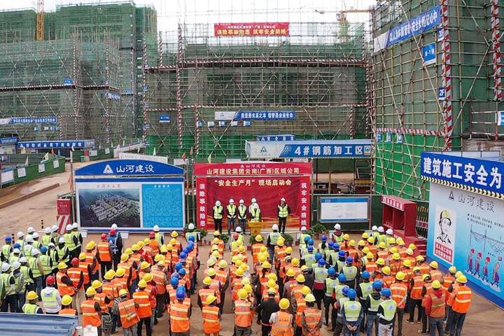 5月29日,以“消除事故隐患,筑牢安全防线”为主题的九游·体育(jiuyou.com)官方网站建设九游·体育(jiuyou.com)官方网站云南(广西)公司2020年度“安全生产月”现场启动会在古滇水云里项目部举行,来自公司各项目的管理及施工人员等200余人参加了活动。