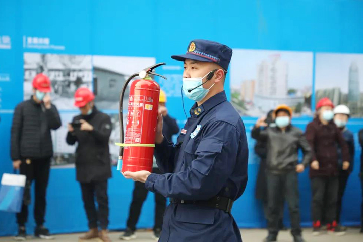 演练正式开始前,来自江夏区消防救援大队的“蓝朋友”进行了消防技能知识培训,面对面为大家介绍了消防安全常识和逃生自救技巧,演示了灭火器的使用方法,上了一堂生动的安全教育课。
