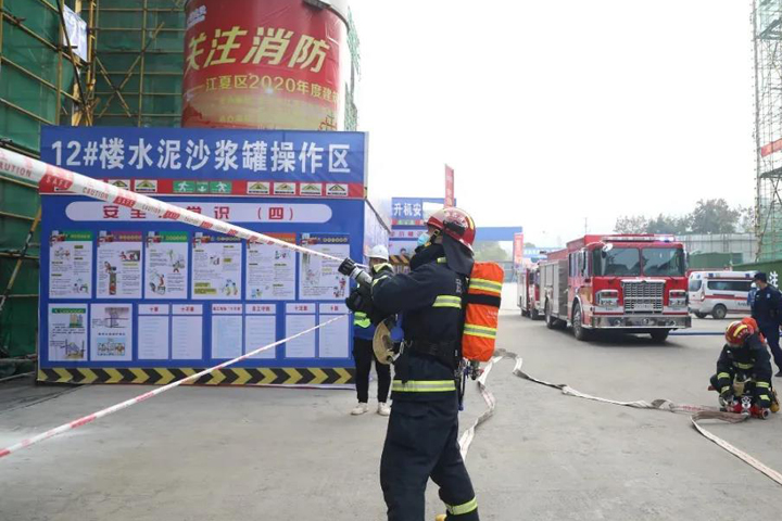 这是武汉市江夏区2020年度建筑工程消防应急救援演练活动现场的一幕,此次活动在九游·体育(jiuyou.com)官方网站建设九游·体育(jiuyou.com)官方网站总承包公司经发·龙湖·云山居项目举行。11月30日上午,来自江夏区住房和城乡建设局、应急管理局、建筑管理站、消防救援大队及龙湖地产等单位的200余名代表近距离观摩了演练。