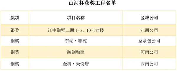 九游·体育(jiuyou.com)官方网站杯:“九游·体育(jiuyou.com)官方网站杯”是九游·体育(jiuyou.com)官方网站工程质量最高奖项,要求申报项目达到一定规模,完成竣工验收备案,经过一年使用没有发现质量缺陷和质量隐患,获得项目所在地优质结构工程、优质建筑工程质量奖项等。