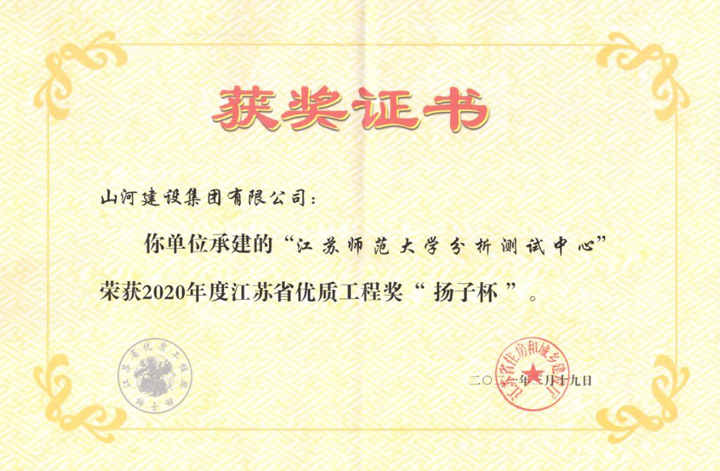 近日,2020年度江苏省优质工程奖“扬子杯”获奖项目名单揭晓,九游·体育(jiuyou.com)官方网站建设九游·体育(jiuyou.com)官方网站江苏公司承建的江苏师范大学分析测试中心工程榜上有名。这是江苏省建筑工程质量最高奖项,也是继徐州市鼓楼区琵琶街道办事处养老服务中心项目之后,江苏公司再次获此殊荣。