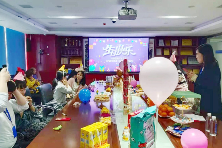小party,大温情,在这个温暖的大家庭里,员工生日会已经成为公司的一项传统活动,也是大家期盼的美好时刻。精彩的游戏环节,小伙伴们摩拳擦掌,兴致勃勃,在抢水瓶、顶气球、弹瓶盖、运球走路等互动游戏中尽情happy,收获了一阵阵的掌声和尖叫声。按照规则,输掉游戏的人给大家演唱歌曲,生日会现场劲歌热舞不断,把活动的气氛推向高潮。