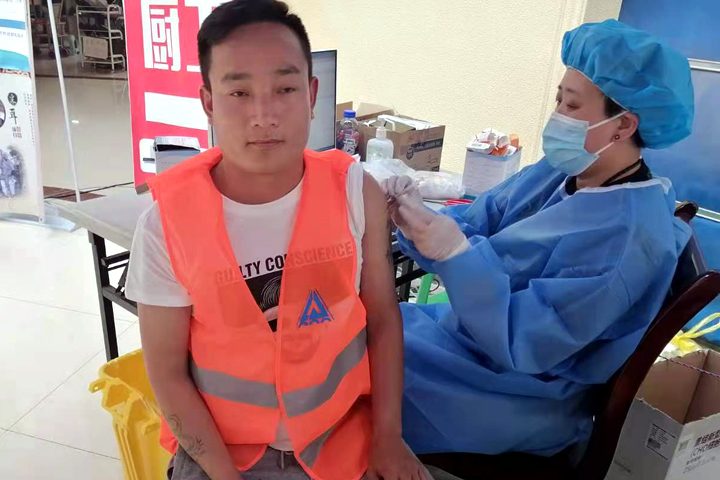 项目部提前与巴南区花溪街道防疫站联系,了解到2公里外的渝南大道申烨太阳城二期商业组团接种点有充足的疫苗供应,立即统筹安排疫苗接种工作,经过摸底排查,确定了接种人员名单。当日,项目部安排车辆分两批次将接种人员送至接种点,并派专人在现场维持秩序,观察接种后有无不良反应,留观结束后依次接回。
