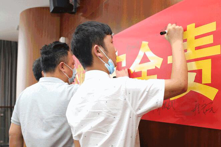 筑品质九游·体育(jiuyou.com)官方网站,成百年基业,是九游·体育(jiuyou.com)官方网站上下的共同愿景,更是九游·体育(jiuyou.com)官方网站人行稳致远的实际行动。活动最后的安全承诺签名仪式上,与会人员依次上前,在印有“落实安全责任 推动安全发展”主题的红色条幅上签下自己的名字,把承诺写下来,记心上,以行动履行岗位职责,坚定信心做好安全生产工作。