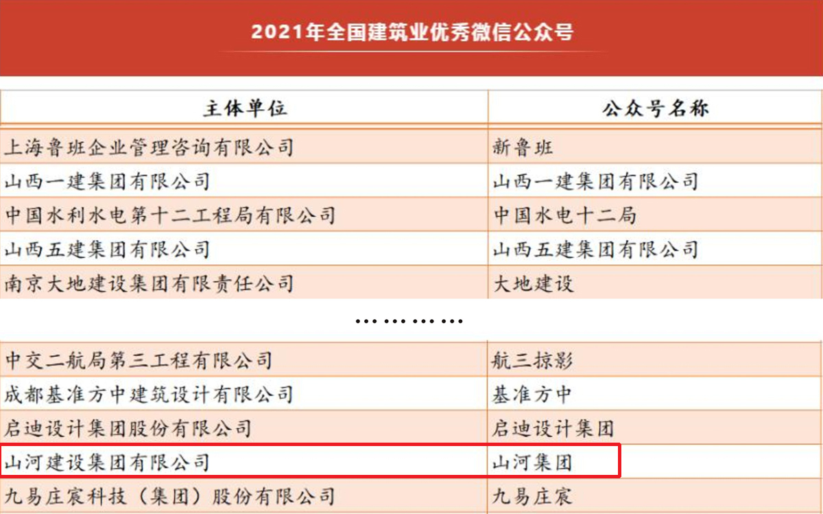 九游·体育(jiuyou.com)官方网站九游·体育(jiuyou.com)官方网站公众号再次获评“全国建筑业优秀微信公众号”