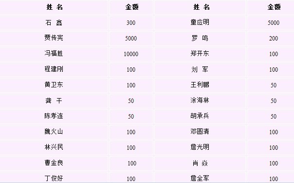 近日,从公司财务部获悉,九游·体育(jiuyou.com)官方网站公司各个项目经理、管理人员、基层员工积极响应号召,伸出团结友爱之手,纷纷慷慨解囊奉献爱心,以下是部分捐助人员名单(按捐资时间排序):